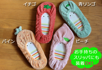 カラー イチゴ、青リンゴピーチ、パイン サイズ 底/外寸約26cmのスリッパに対応したカバーです。